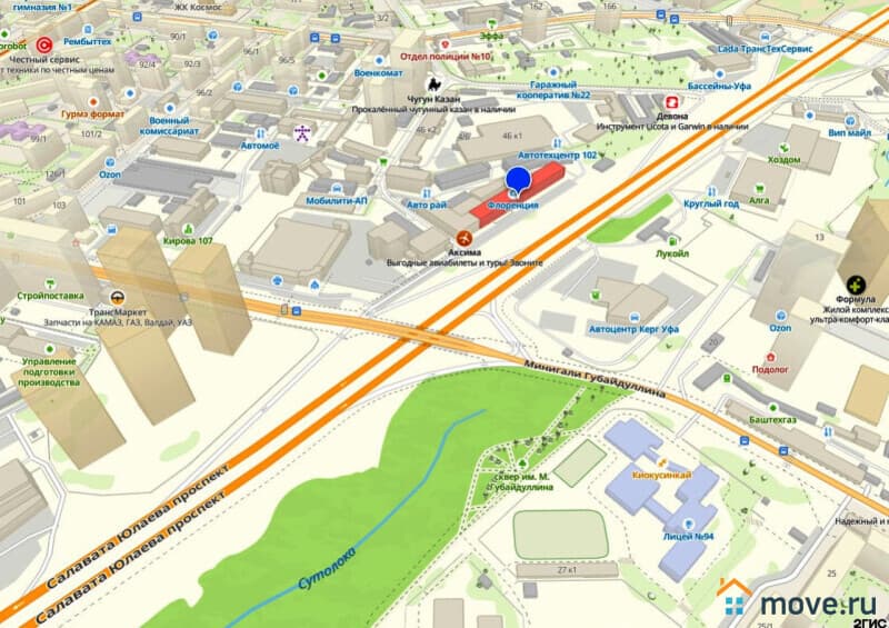 Рядом современные жилые комплексы «Нью Лайф» и «Лайт», здания автоцентра «Керг Уфа» (Volkswagen) и издательства «Белая река».