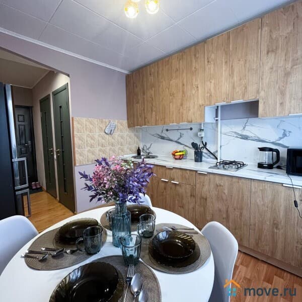 Просторные трёхкомнатные апартаменты -- это не просто жильё, это место, где вы сможете отдохнуть, поработать и насладиться уютом после насыщенного дня. Вместимость до 6 гостей делает наши апартаменты идеальным выбором для командированных групп, семей или компании друзей.
