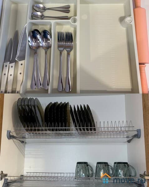 Кухня мечты: посуда, газовая плита, микроволновая печь, электрочайник, холодильник с морозильной камерой. Готовьте с удовольствием!